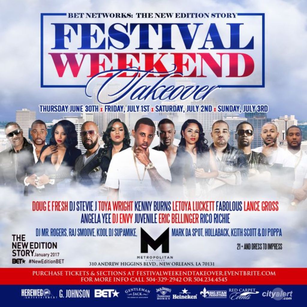 BET NETWORKS, JACK DANIEL'S HONEY, GENTLEMAN JACK, HEINEKEN, BIG STAN PRODUCTIONS, G. JOHNSON, RED CARPET EVENTS NOLA & HEREWEGO ENTERTAINMENT present... The Highly Anticipated 9th Annual... 4th of July Festival Weekend "TAKEOVER" @ Nola's Largest & Most Upscale Venue... The METROpolitan Nightclub aka Generations Hall (310 Andrew Higgins Drive in NOLA's Downtown Warehouse District)